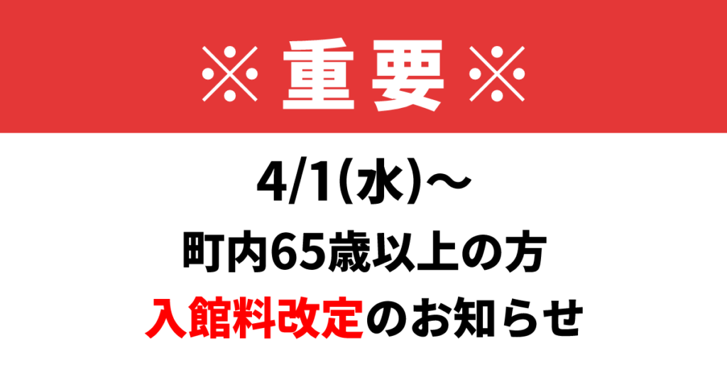 ※重要※ 4/1(水)~ 町内65歳以上入館料・利用者カード発行手数料改定のお知らせ